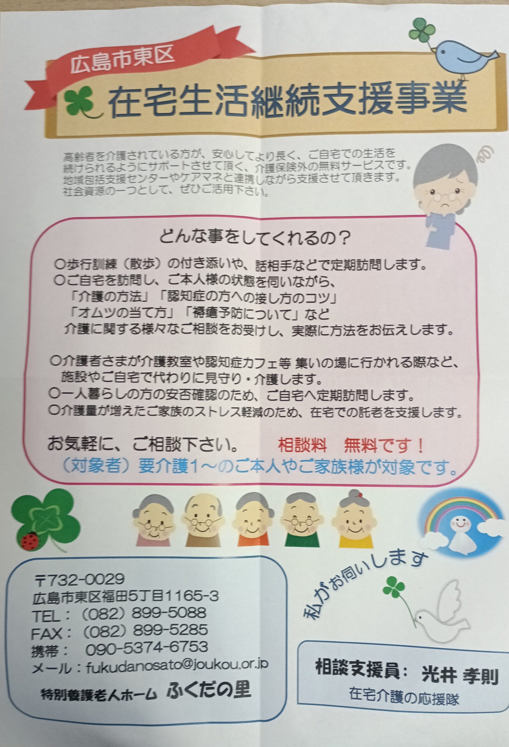 それが、広島市東区お住まいの皆様方に向けての「在宅生活継続支援事業」のチラシです。