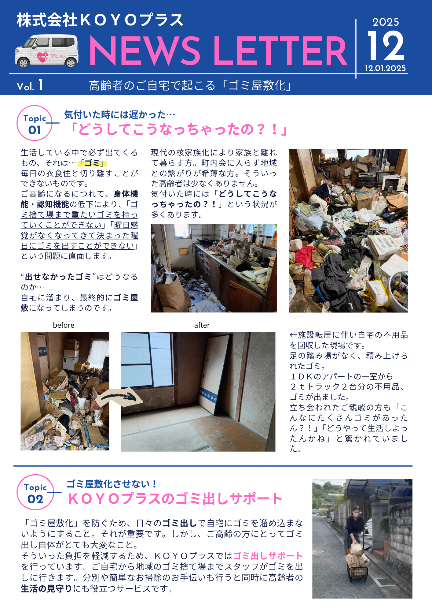株式会社KOYOプラス広報誌vol.1~高齢者のご自宅で起こる『ゴミ屋敷化』~