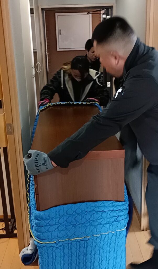 まずは、引っ越し先に持っていくものを先に運び出して積み込みます。家具や家の中に傷がつかないように丁寧に作業しています!